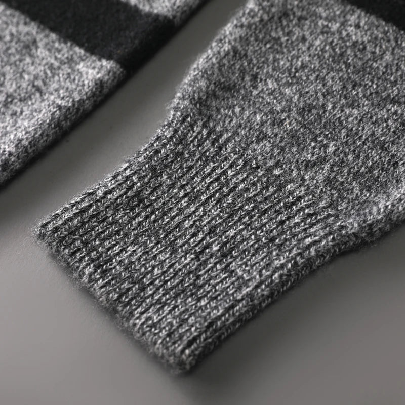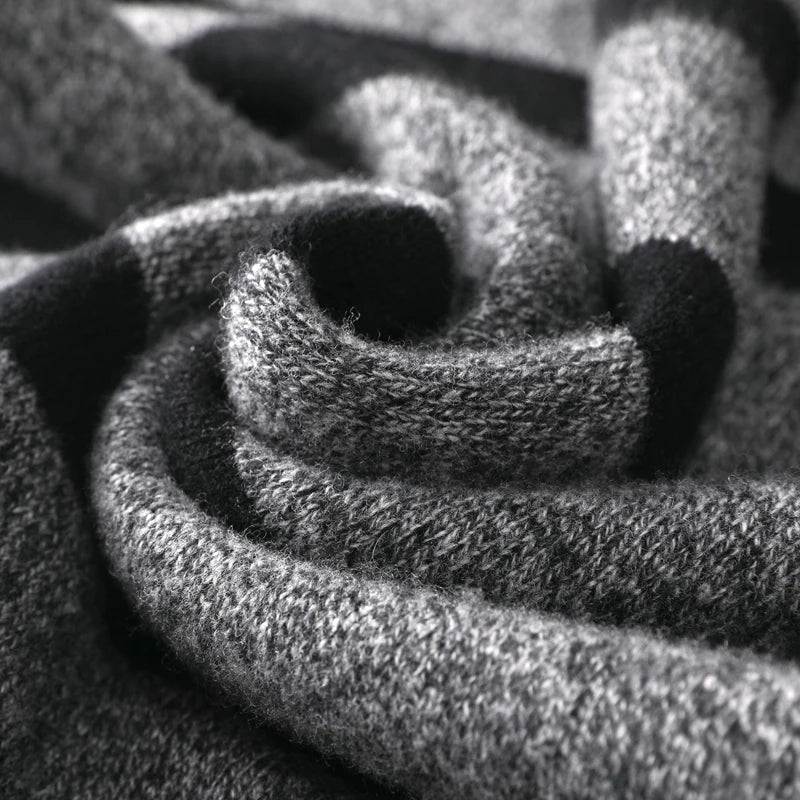 Minimalist with a masculine edge, the Kaito Sweater is a cool-weather staple built for simplicity and structure. Featuring wide charcoal and black stripes, this piece balances softness with clean contrast.