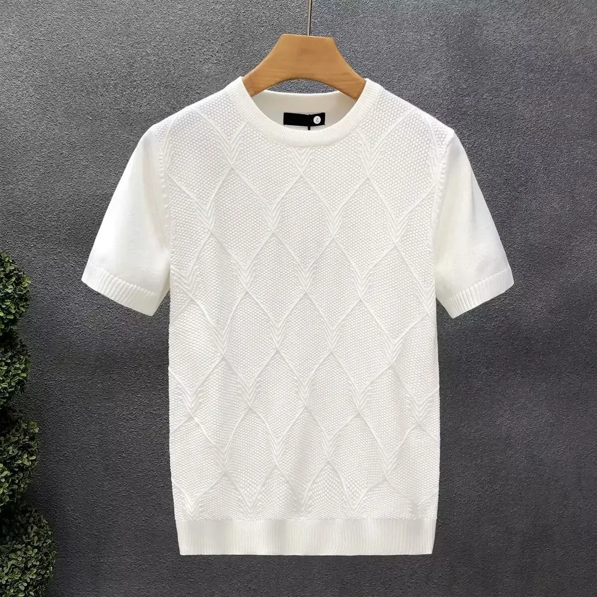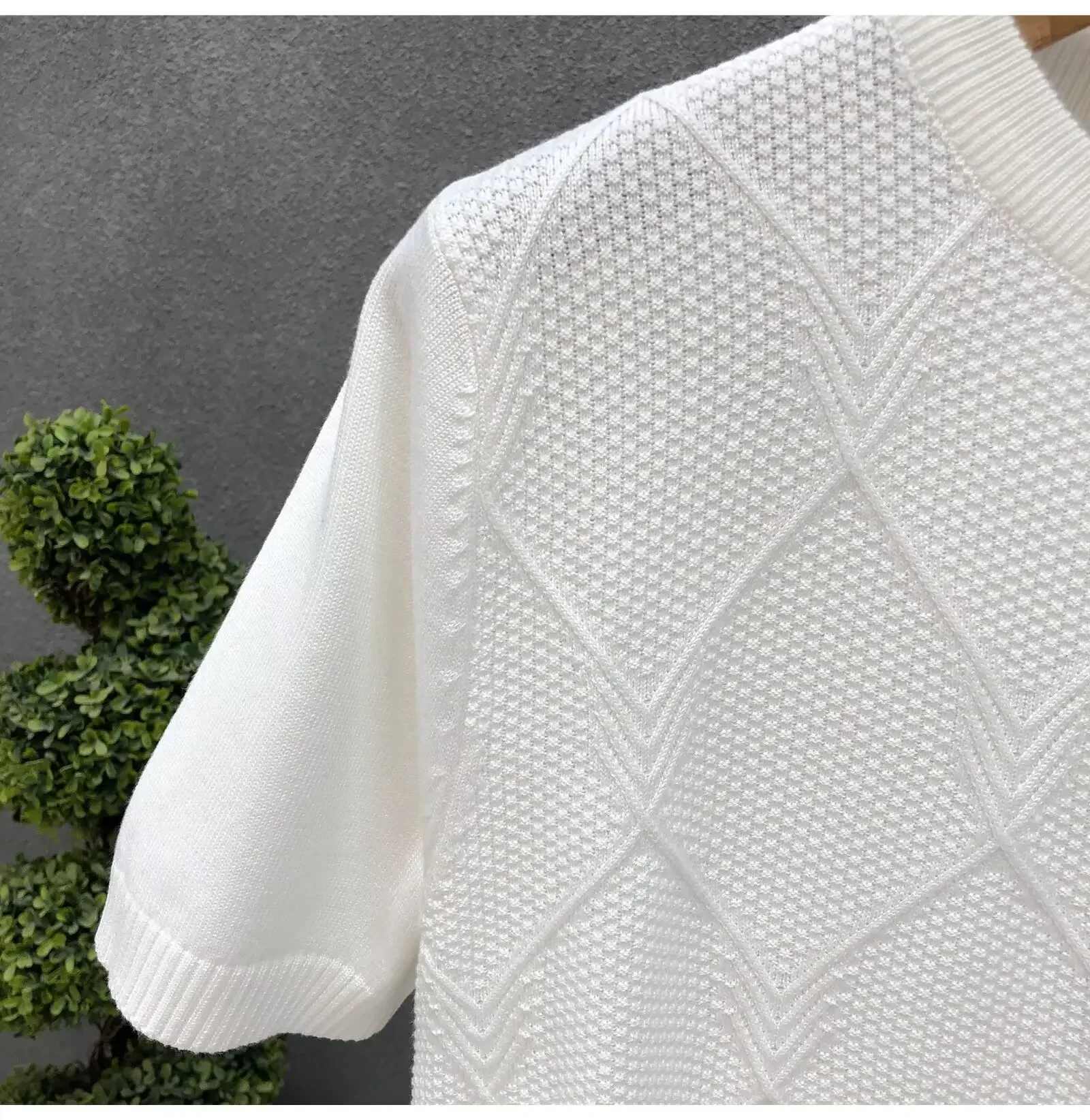 ChimArgyle-Pull Blanc à Manches Courtes pour Homme, Haut à la Mode, Décontracté, Style Coréen, Base Amincissante, Été