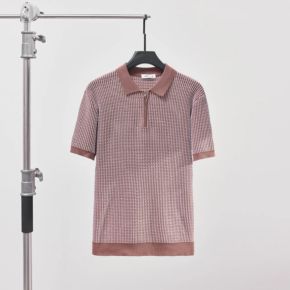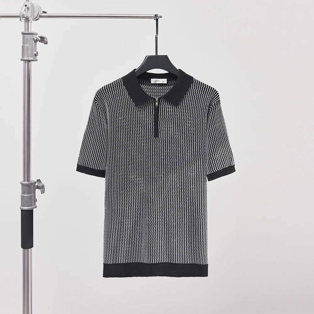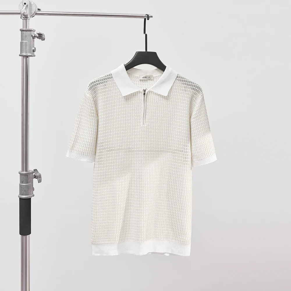 Crafted from ultra-light, soft cotton, the Lucente Polo is built for sun, movement, and minimal effort. With its refined zip collar, soft ribbed trims, and subtle micro-pattern, it’s the kind of piece that catches the light - and doesn’t try too hard to do it.