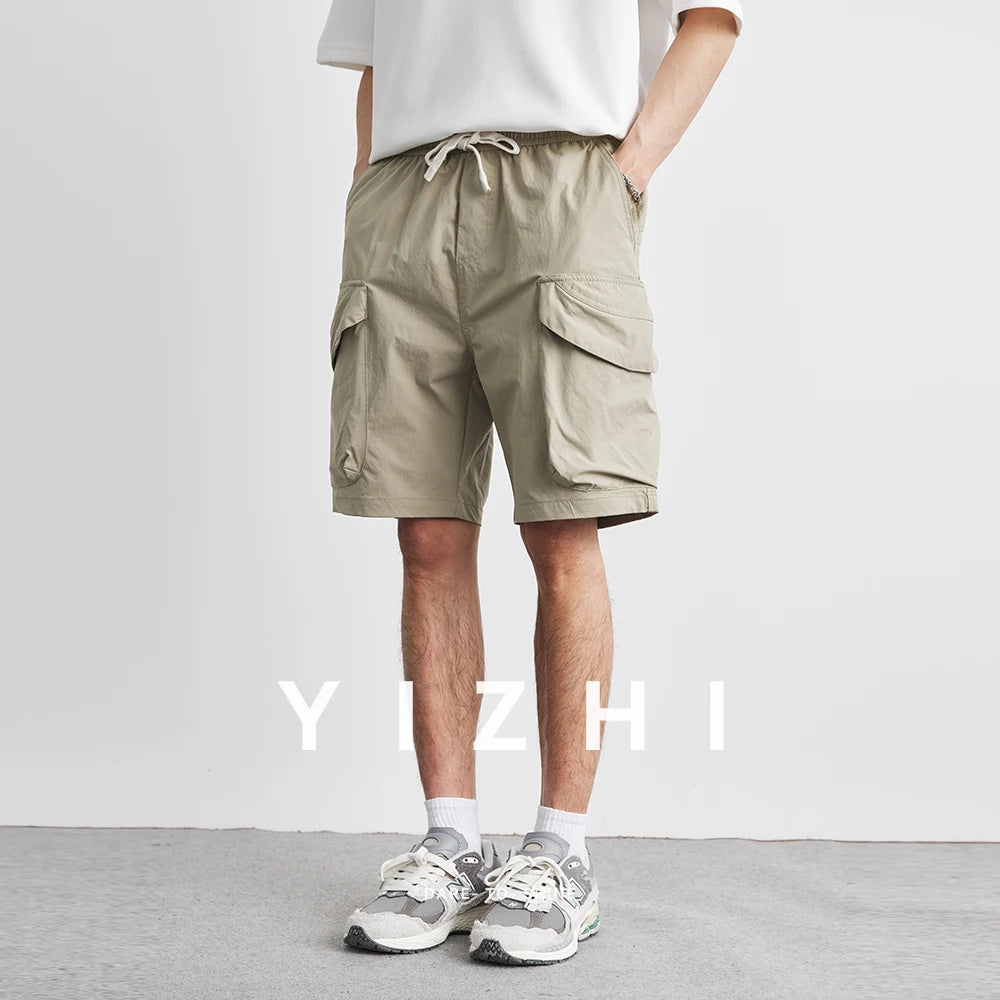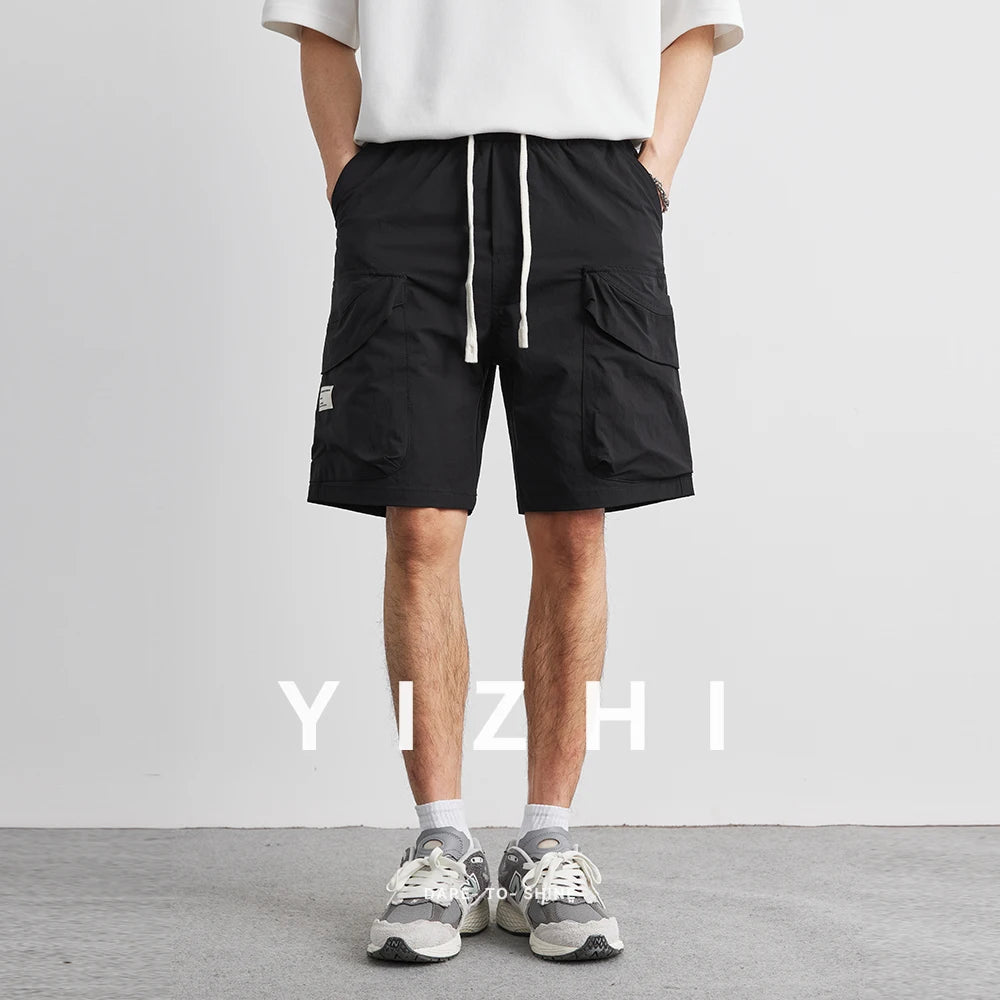 Men Summer Retro Cargo Shorts 2025 Summer Black Loose Men's Casual Shorts Side Pocket Wide Leg Short Pants for Male