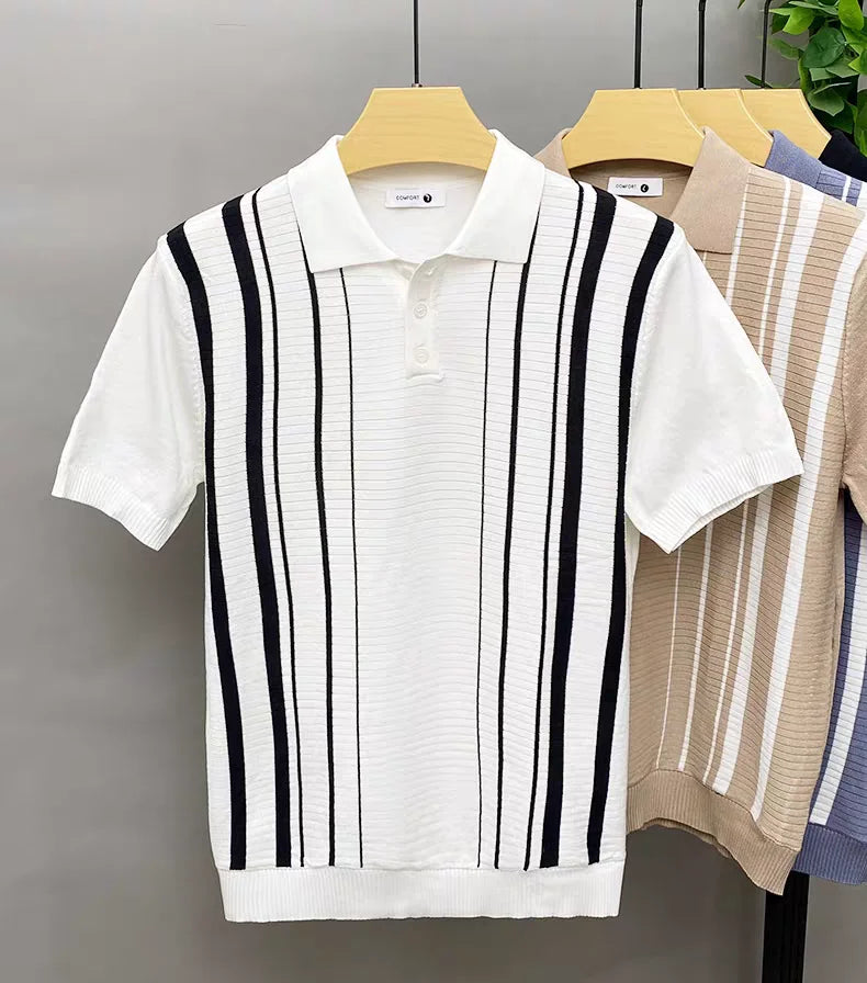 Crafted from ultra-soft premium cotton, the Roma Polo channels vintage Italian charm with bold vertical lines and a tailored silhouette.
