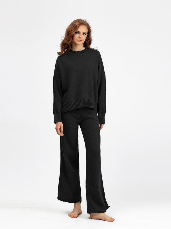 Crafted from a soft, textured knit in a sun-kissed hue, our Solara Lounge Set captures the essence of relaxed refinement. The gently cropped sweater pairs with wide-leg knit trousers for a silhouette that moves with quiet confidence - perfect for slow mornings or golden-hour evenings.